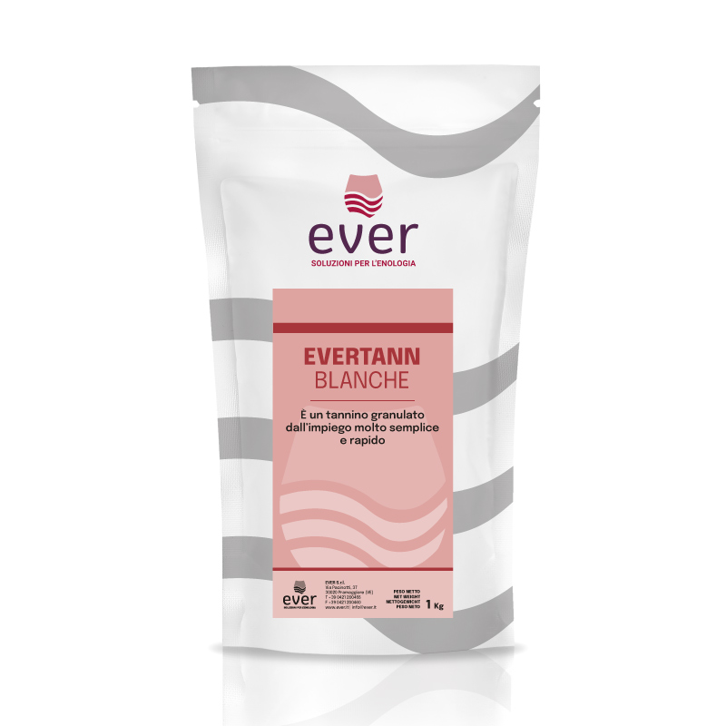 EVERTANN BLANCHE za bela, rose (drozga, mošt) vina, je mešanica taninov z značilno in ustrezno stopnjo astrigence primeren je za bela in rose vina. Krepi njihovo strukturo in ima antiosidativni učinek.